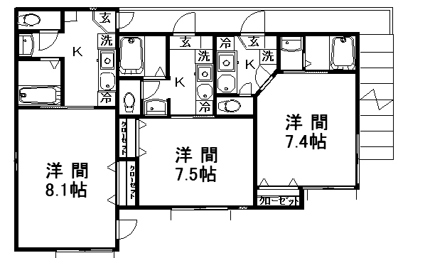 101号室:賃料:59,000円 共益費:3,000円
